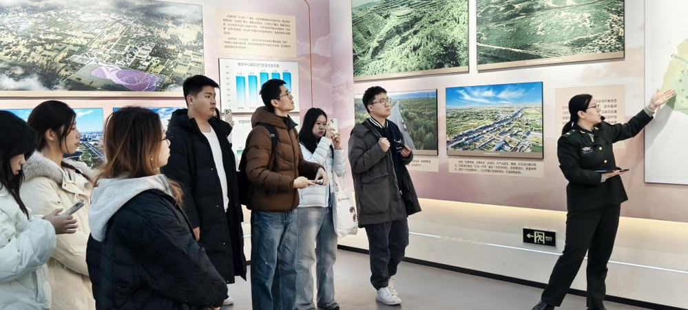 初冬的陕北,寒意渐浓,但榆林女子民兵治沙连基地内却绿意犹存,松柏挺拔。在女子民兵治沙连展览馆,一幅幅图片、一件件实物和纪实影片,系统再现了治沙连姑娘们数十年来在毛乌素沙漠边缘艰苦奋斗、植树造林的感人事迹。从“一棵树”到“一片林”,从“沙进人退”到“绿进沙退”,师生们跟随着讲解员的步伐,仿佛穿越了时空,亲身感受了那段战天斗地的峥嵘岁月。